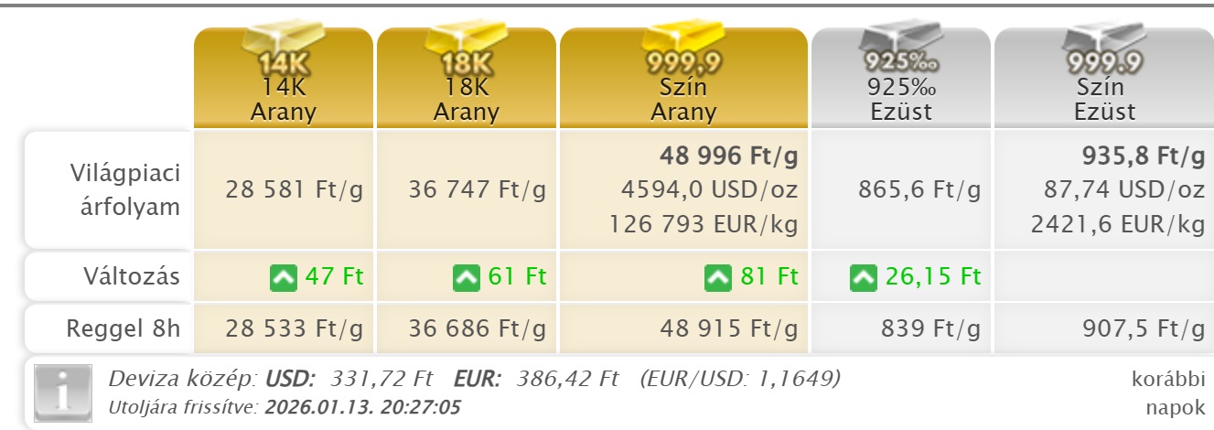 Aktuális Árfolyam 2026